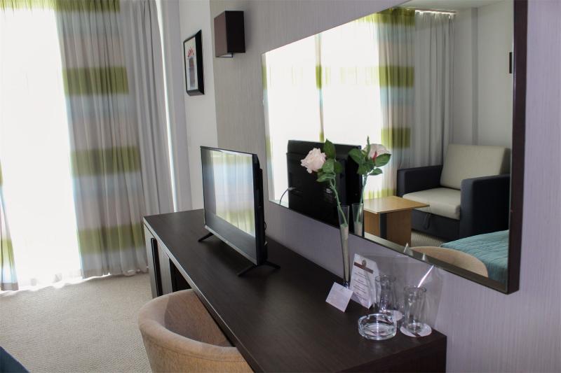 Sandy Bay Hotel 4* disponuje 244 útulnými a moderně zařízenými pokoji, které hostům zajišťují pohodlí a komfort po celou dobu pobytu. Každý pokoj a apartmán je vybaven individuálně nastavitelnou centrální klimatizací, televizí s plochou obrazovkou, fénem, koupelnou s vanou, minibarem (zdarma doplněn při příjezdu, denně doplňována voda), bezdrátovým připojením k internetu a bezplatným trezorem pro vaše klidné a bezpečné ubytování.