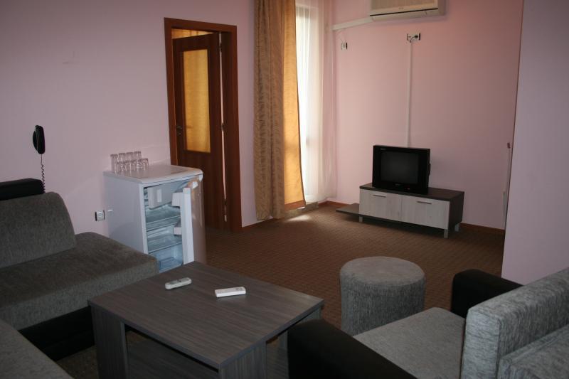 Velmi vkusně zařízení dvoulůžkové i třílůžkové pokoje a luxusní apartmány. Všechny pokoje mají vlastní soc. zařízení, ledničku, SAT/TV, telefon a klimatizaci. V hotelu je k dispozici sauna a fitness za poplatek. Wifi připojení zdarma. Hotel nemá výtah. Na místě za poplatek: dětská postýlka 6leva/den, domácí mazlíčce do 10kg za 10leva/den, parkování 10 leva/den.