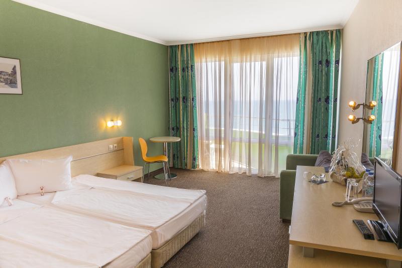 Dvoulůžkové pokoje Promo nemají balkon a jsou bez přistýlky. Standardní dvoulůžkové pokoje s možností přistýlky, jsou vybaveny vlastním soc. zařízením, fénem, klimatizací, SAT/TV, telefonem, ledničkou a balkonem. Přistýlka je formou rozkládacího gauče, který je vhodný pro 2 menší děti nebo jedno větší dítě nebo jednoho dospělého (maximalní obsazení 2+2 děti nebo 3 dospělé osoby). Pokoje typu Family room jsou prostornějši, možnost až dvou přistýlek, maximalní osazenost 4 osoby. Dětská postýlka na vyžádání. Wi-fi připojení na pokoji zdarma.