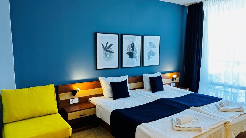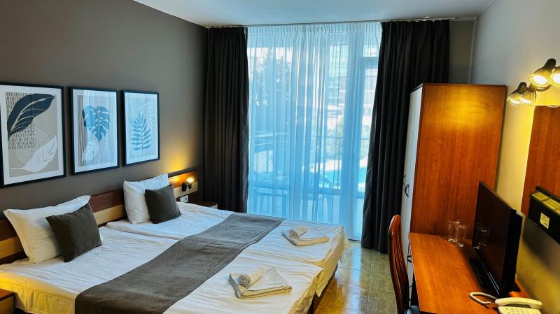 Hotel disponuje recepcí, směnárnou, trezorem (za poplatek), hlavní restaurací, venkovním bazén s oddělenou částí pro děti. Hotel dále nabízí bar s kulečníkem (za poplatek), stolní tenis (zdarma), dětský koutek, dětské hřiště, wifi (zdarma). Dětská postýlka na vyžádání (poplatek 10 BGN/den). Animace pro děti 6x týdně. Sportovní aktivity/vodní gymnastika pro dospělé 6x týdně.
