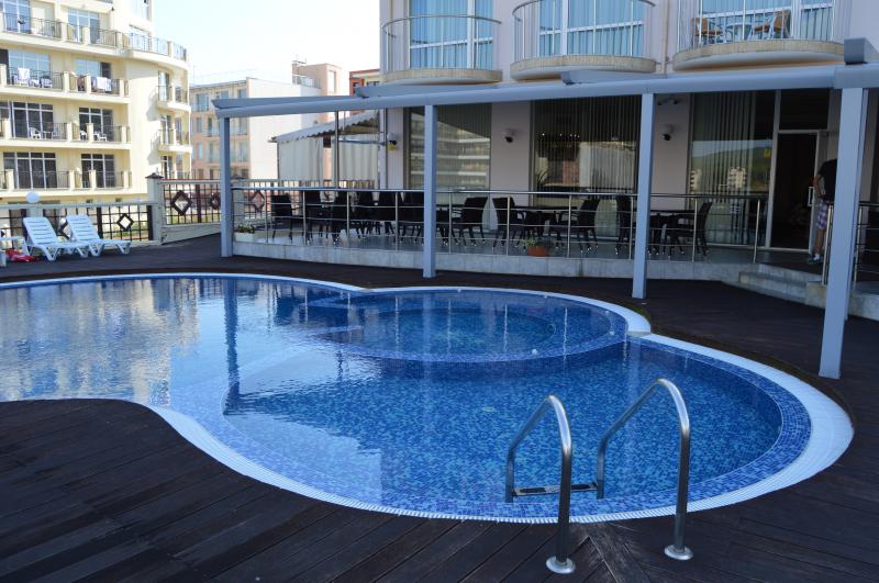 V hotelu je recepce, výtah, bazén s vířivkou a dětským bazénem, lehátka a slunečníky u bazénu zdarma. Bazén je vyhřívaný (30-32°). V hotelu si můžete zahrát zdarma kulečník. Na recepci možnost pronájmu bezpečnostní schránky zdarma a totéž platí i pro zapůjčení dětské postýlky. Možnost wifi připojení na recepci, u bazénu a v restauraci zdarma. NOVĚ: výborně vybavené fitness, infrasauna (6lv/hodina). Během dne je možné si zakoupit nápoje v hotelové restauraci.