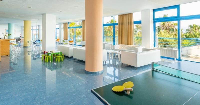 Hostům je k dispozici vstupní hala s recepcí, výtah, restaurace s venkovní terasou s výhledem na moře, bar, venkovní bazén se slunečníky a lehátky (zdarma), beach bar s nabídnou nápojů a jednoduchých jídel (pizza apod.), disco club, animační a sportovní programy, řecké večery s folklórními tanci, večerní programy a barbecue večeře, Wi-Fi v lobby (zdarma), šachy, pingpongový stůl, biliard (za poplatek). Lehátka na pláži zdarma! Na pláži je možno využít nabídky vodních sportů – kajaky, motorové vodní skútry, vodní lyže, šlapadla (za poplatek).