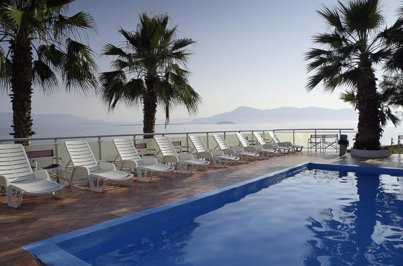 Hostům je k dispozici vstupní hala s recepcí, výtah, restaurace s venkovní terasou s výhledem na moře, bar, venkovní bazén se slunečníky a lehátky (zdarma), beach bar s nabídnou nápojů a jednoduchých jídel (pizza apod.), disco club, animační a sportovní programy, řecké večery s folklórními tanci, večerní programy a barbecue večeře, Wi-Fi v lobby (zdarma), šachy, pingpongový stůl, biliard (za poplatek). Lehátka na pláži zdarma! Na pláži je možno využít nabídky vodních sportů – kajaky, motorové vodní skútry, vodní lyže, šlapadla (za poplatek).