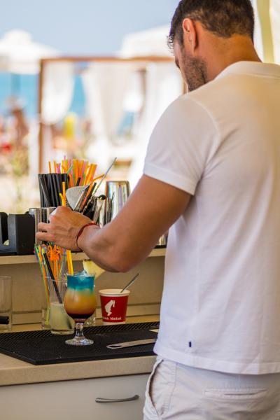 Bar u bazénu (10:00 – 17:00): výběr alkoholických a nealkoholických koktejlů, vína, studené pivo, teplé a nealkoholické nápoje, limonáda a smoothie.