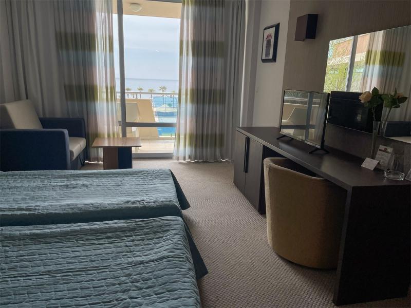 Dvoulůžkové pokoje jsou vybaveny dvěma samostatnými lůžky a jedním rozkládacím křeslem (90x190 cm), centrální klimatizací s individuálním ovládáním, TV s plochou obrazovkou, bezplatným Wi-Fi připojením, trezorem (zdarma), koupelnou s vanou, fénem a balkonem. Pokoje tohoto typu si můžete vybrat s krásným výhledem na moře nebo bez něj – podle vašich preferencí. Maximální kapacita je 2 dospělí a 2 děti do 11,99 let nebo 3 dospělí a dítě do 6-ti let. Je na zvážení klientů zda se na přistýlku vejdou. Dětská postýlka je k dispozici zdarma po předchozím požadavku.