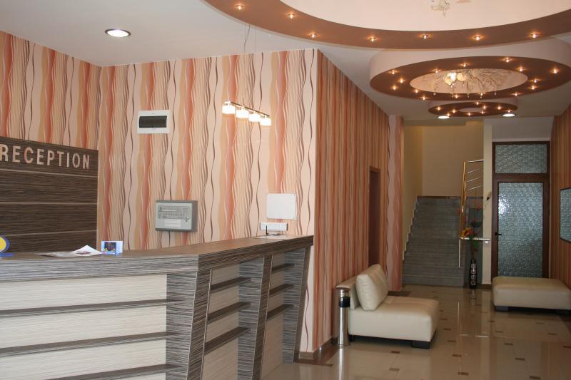 Velmi vkusně zařízení dvoulůžkové i třílůžkové pokoje a luxusní apartmány. Všechny pokoje mají vlastní soc. zařízení, ledničku, SAT/TV, telefon a klimatizaci. V hotelu je k dispozici sauna a fitness za poplatek. Wifi připojení zdarma. Hotel nemá výtah. Na místě za poplatek: dětská postýlka 6leva/den, domácí mazlíčce do 10kg za 10leva/den, parkování 10 leva/den.