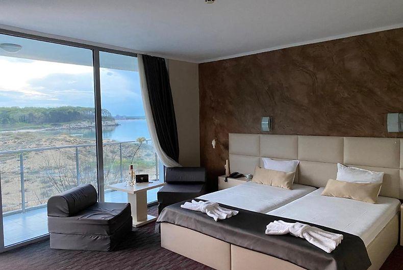 Moderně zařízené dvoulůžkové pokoje s možností dvou přistýlek mají vlastní sociální zařízení (koupelna/WC, vysoušeč vlasů) a jsou vybaveny centrální klimatizací, televizorem s příjmem satelitních kanálů, minibarem, telefonem a náleží k nim balkon. Je možné vybrat si pokoj s výhledem na park, na bazén nebo s částečným výhledem na moře. K dispozici jsou také rodinné pokoje. Lze na vyžádání zajistit dětskou postýlku.