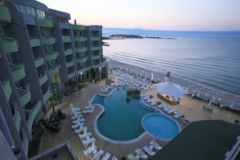 Hotel Arsena se nachází přímo u pláže v jižní části nového Nesebaru.Vzdálenost od historického centra je zhruba 1 km. Doporučujeme večerní procházku podél pobřeží starého Nesebaru.