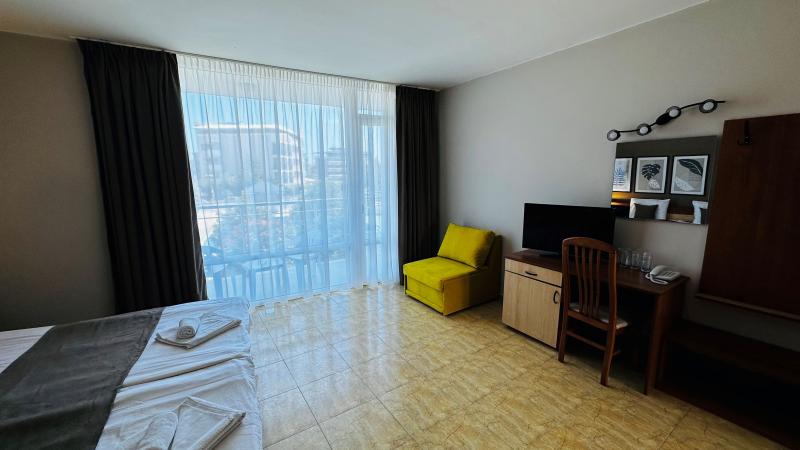 Hezký hotel je situován mezi pláží a centrem městečka s bohatými možnostmi zábavy a nákupů. V docházkové blízkosti hotelu se nachází aquapark. Hotel se nachází ve vzdálenosti přibližně 650 m od centra letoviska a zhruba 250 m od severní pláže. Letiště v Burgasu je vzdáleno 55 km.