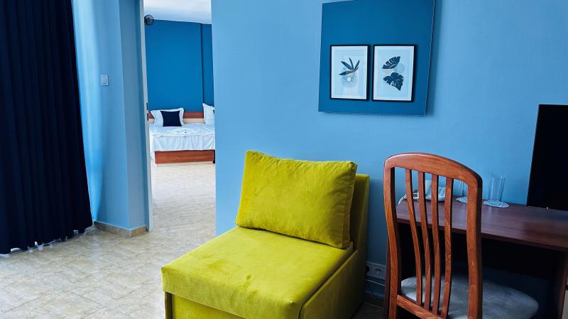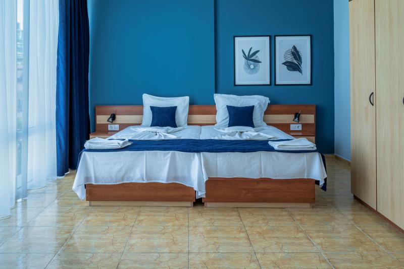 Hotel nabízí vkusně zařízené klimatizované dvoulůžkové pokoje s možností jedné přistýlky (max. obsazenost 3+0, 2+1), pokoje se třemi pevnými lůžky s možností jedné přistýlky (min. obsazenost 2+1 a max. obsazenost 3+0, 2+2), rodinné pokoje 1/4 (2 místnosti propojené dveřmi) pro 4 osoby a apartmány s ložnící a obývacím pokojem (max. obsazenost 3+1, 2+2). Všechny typy ubytování mají vlastní sociální zařízení (koupelna se sprchou/vanou a WC), fén, TV/SAT, minibar a balkon s posezením.
