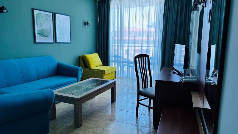 Hotel disponuje recepcí, směnárnou, trezorem (za poplatek), hlavní restaurací, venkovním bazén s oddělenou částí pro děti. Hotel dále nabízí bar s kulečníkem (za poplatek), stolní tenis (zdarma), dětský koutek, dětské hřiště, wifi (zdarma). Dětská postýlka na vyžádání (poplatek 10 BGN/den). Animace pro děti 6x týdně. Sportovní aktivity/vodní gymnastika pro dospělé 6x týdně.