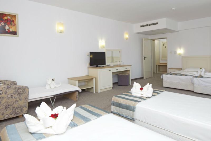Pětipodlažní hotel nabízí přibližně 155 pokojů. V naší nabídce naleznete standardní dvoulůžkové pokoje s jednou přistýlkou a dvoulůžkové pokoje se dvěma přistýlkami (maximální obsazenost 2+2). Dále má hotel k dispozici studia Family deluxe, které mají 3 pevná lůžka (cena na vyžádání) a jednu přistýlku a studia Superior se čtyřmi pevnými lůžky (cena na vyžádání). Všechny pokoje jsou klimatizované, mají vlastní sociální zařízení (sprchový kout, fén), TV-SAT, telefon, mini bar a balkon. Dětská postýlka na vyžádání zdarma.