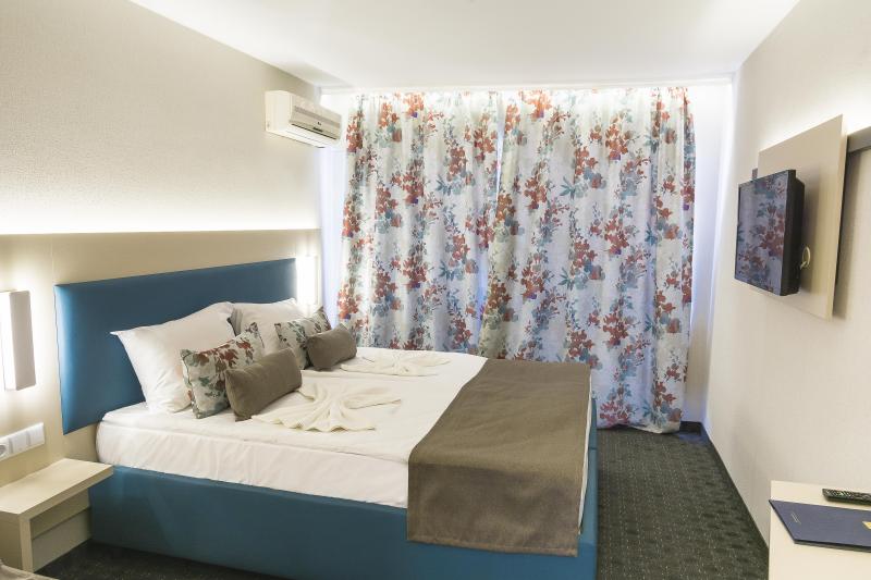 Moderní dvoulůžkové pokoje s možností jedné přistýlky jsou vybavené soc. zařízením, fénem, SAT TV, telefonem, ledničkou, klimatizací a balkónem. Dětská postýlka na vyžádání. Wi-fi připojení na pokoji zdarma.